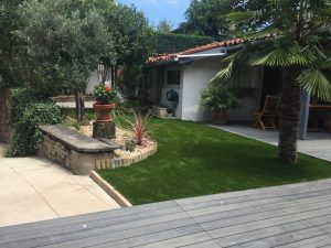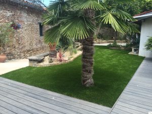 Nous posons uniquement du synthétique haut de gamme : rendu naturel, on est loin de l'effet plastique. L'avantage du synthétique : Le rendu est "comme sur les photos", et il n'y a aucun entretien ni évidemment d'arrosage à faire.