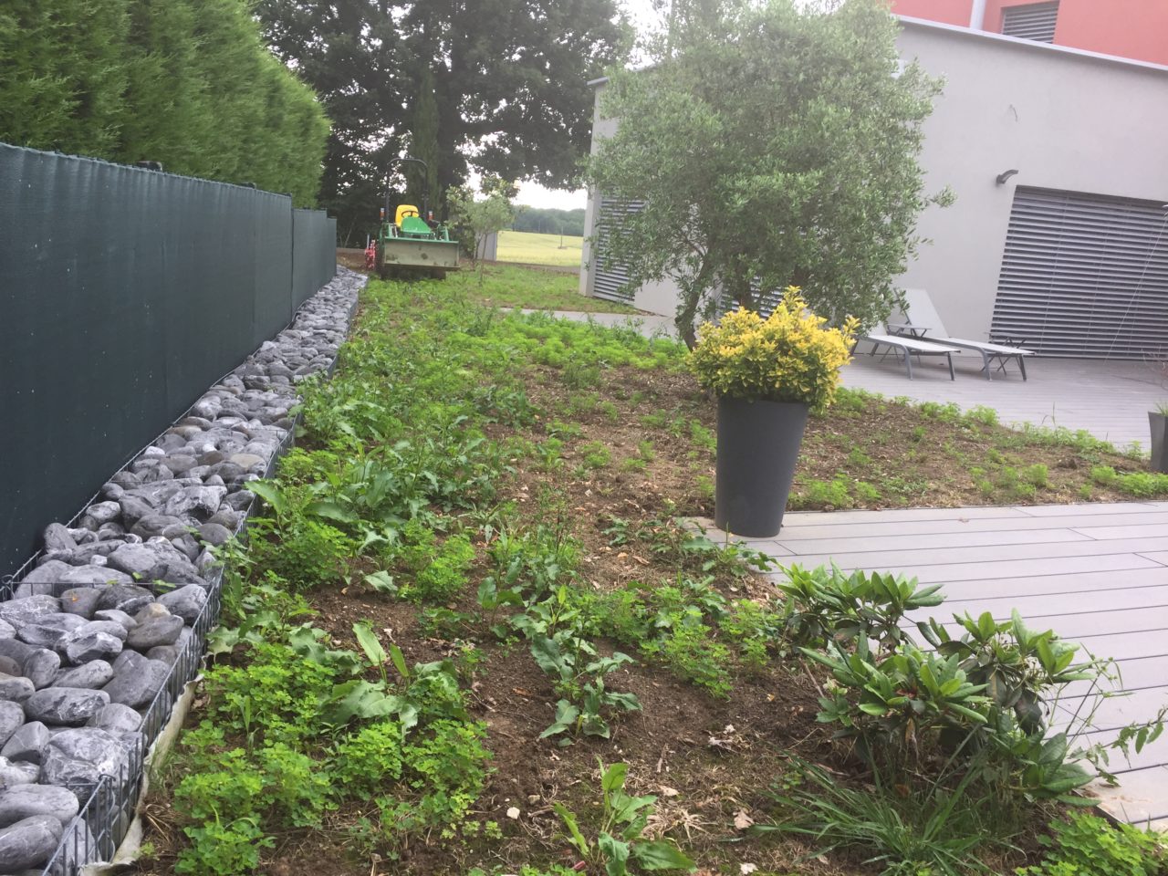 Notre intervention sur mesure permet de l'intégrer à un jardin paysager. Selon les cas, nous pouvons poser de la toile de paillage pour le stabiliser, planter des espèces végétales à fort pouvoir racinaire, quelques rosiers ou lavandes pour le côté esthétique... Et le talus devient une partie intéressante du jardin !