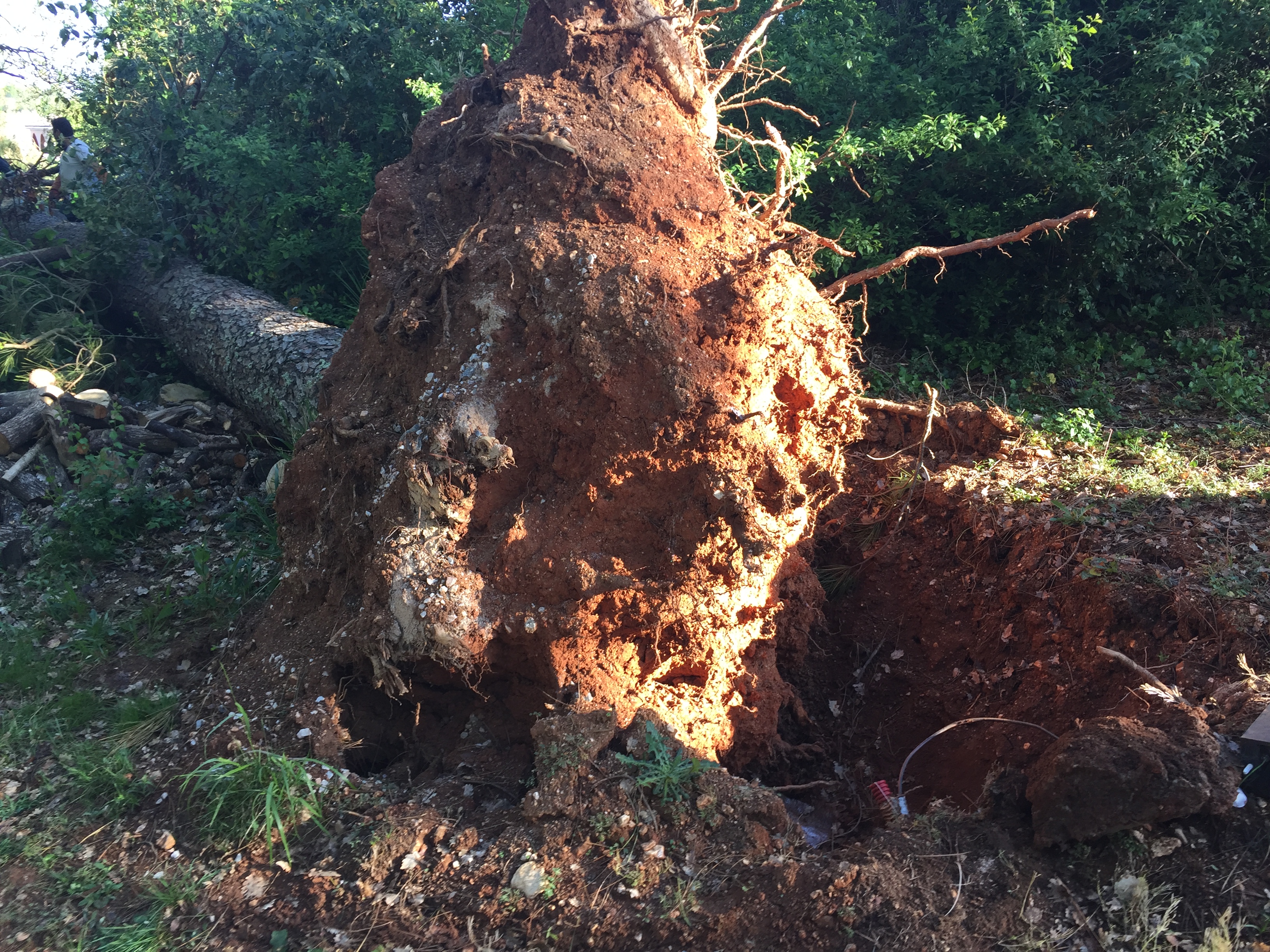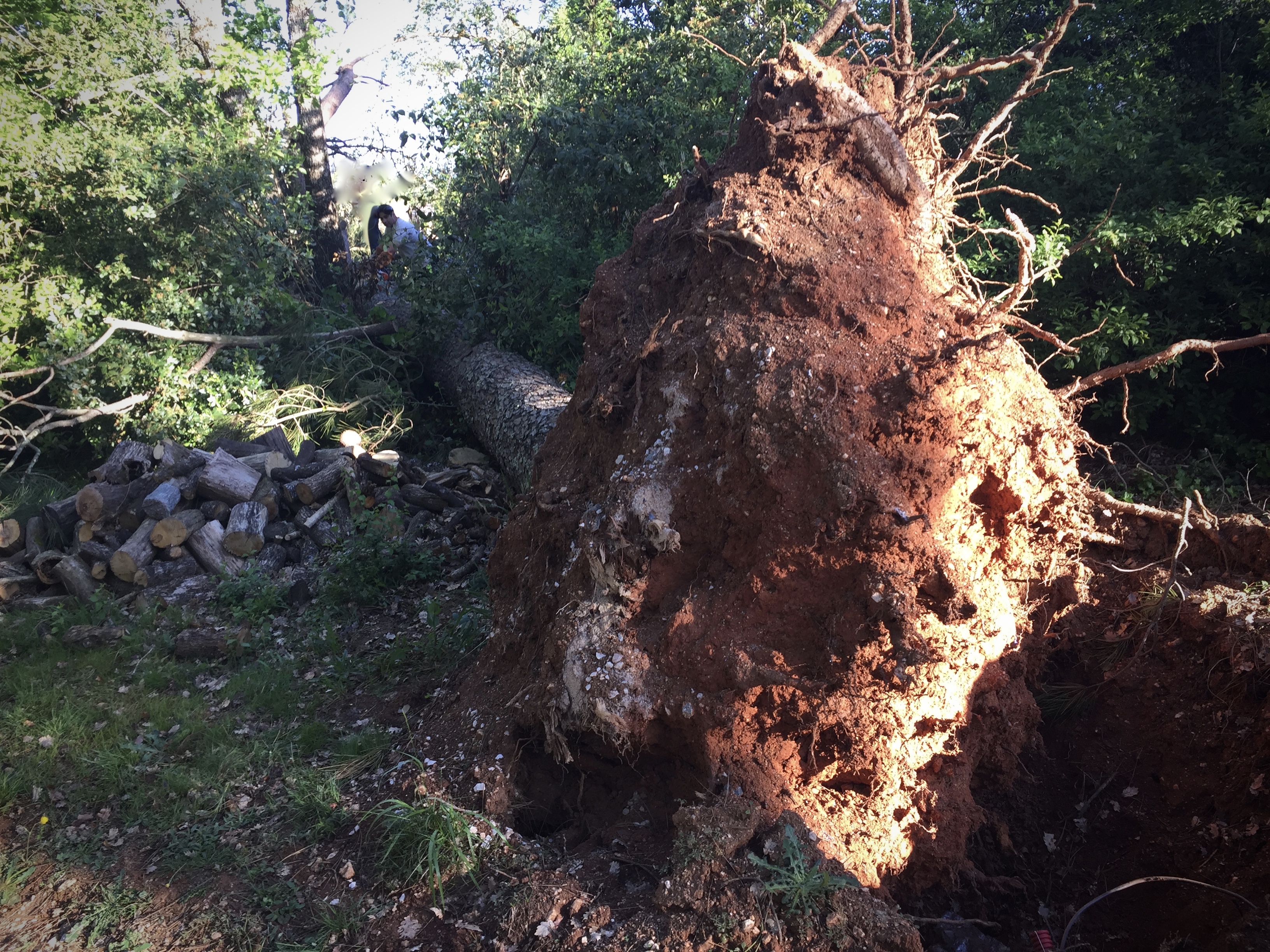 Evacuation d'un pin de 25m tombés à terre suite à de grands vents